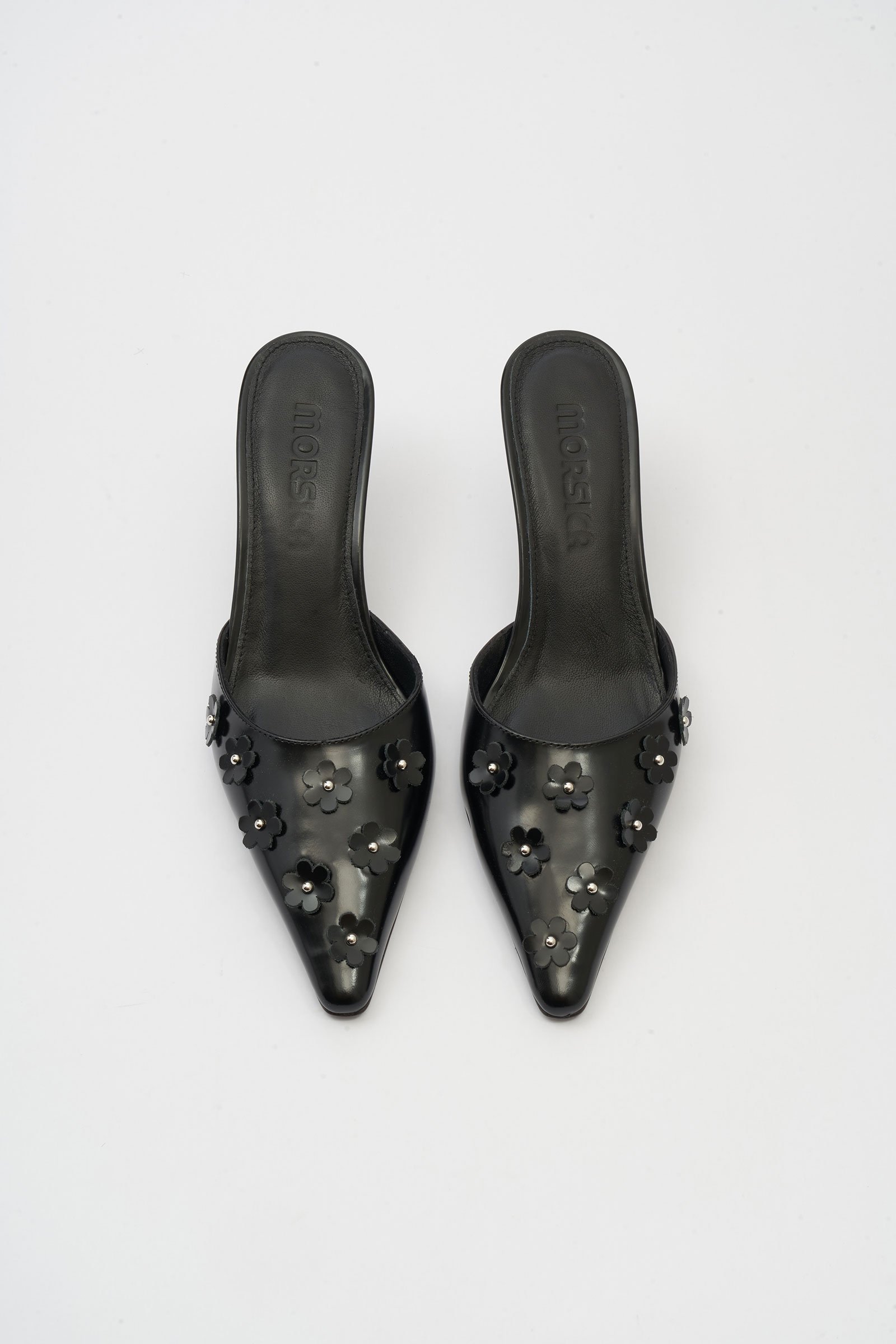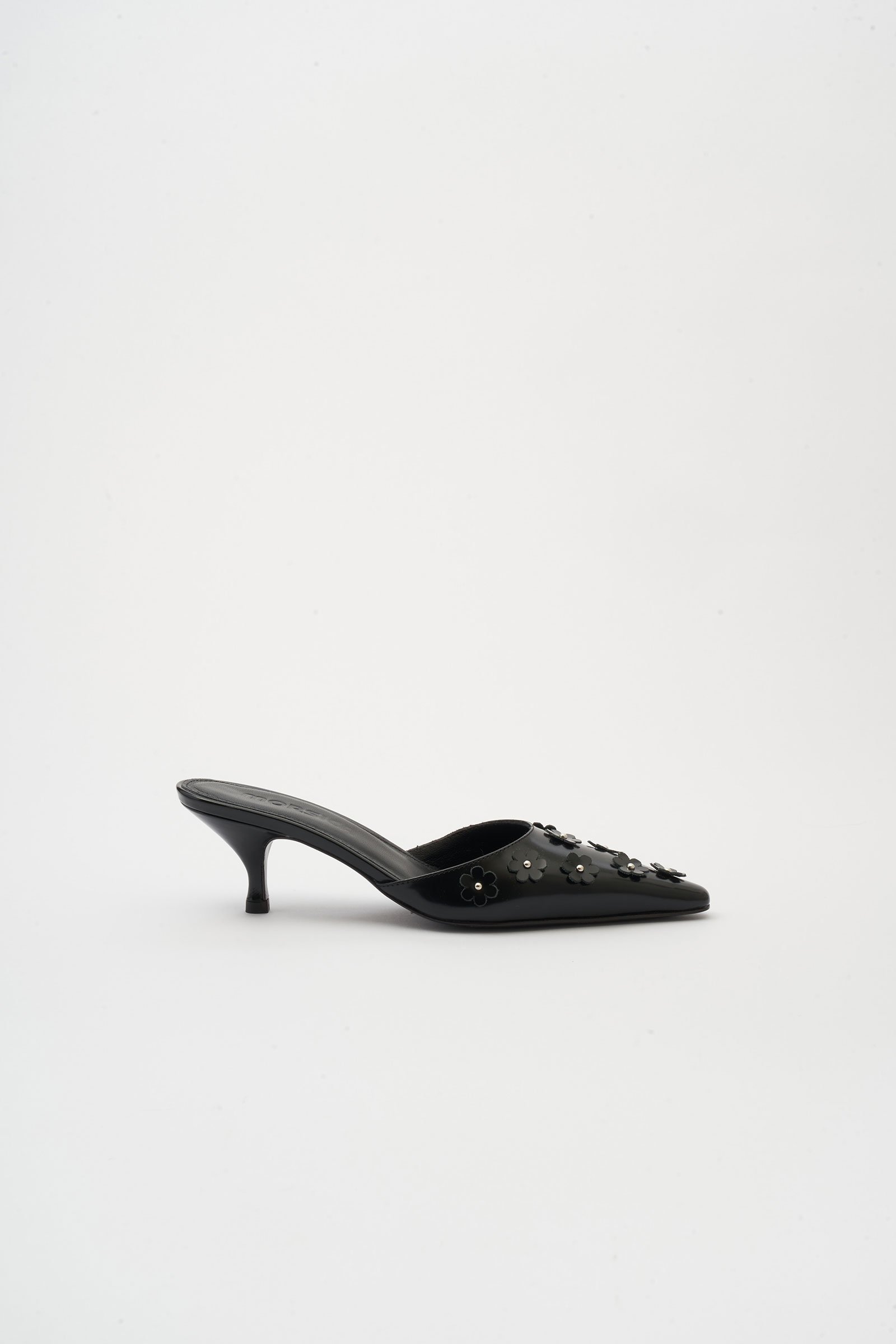 Bea Flowers Black Leather Sabot