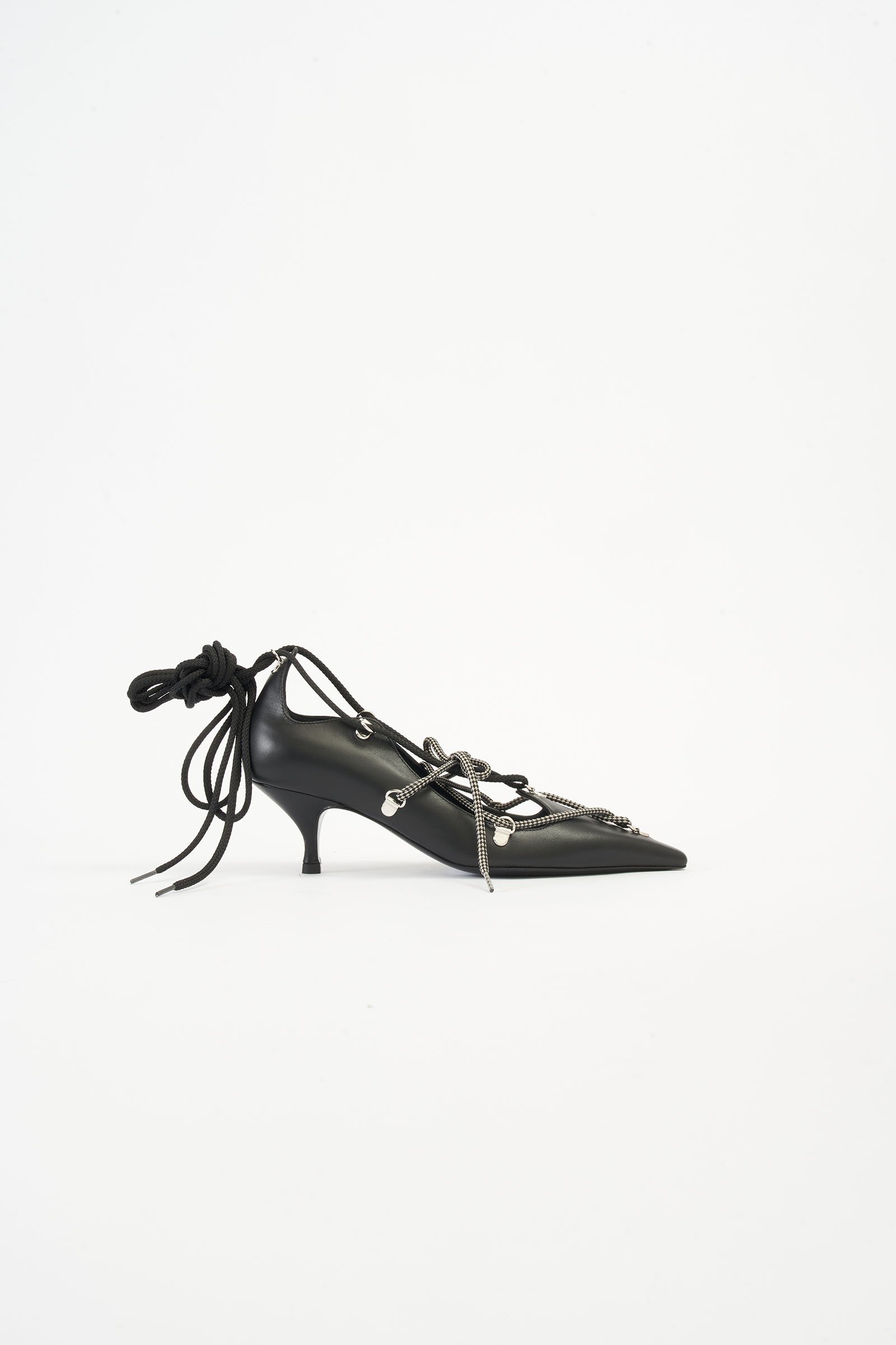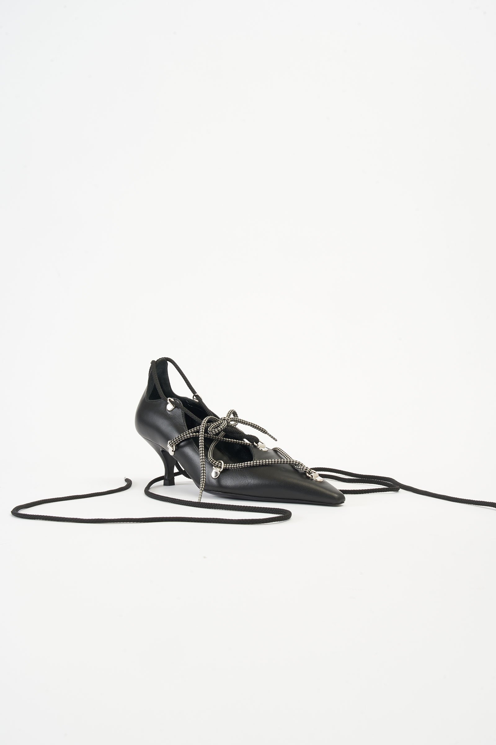 Bea Lace-Up Black Leather Pumps