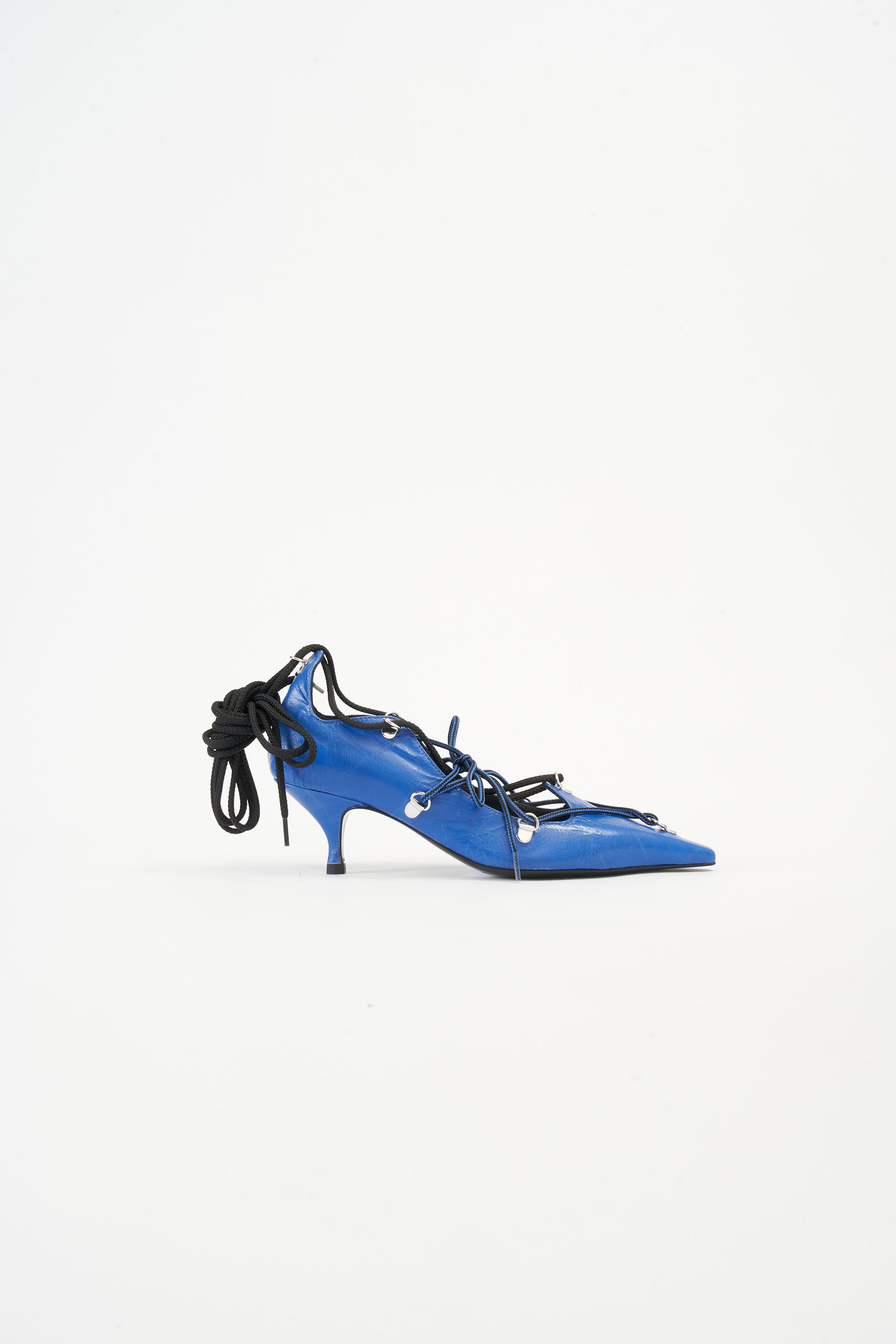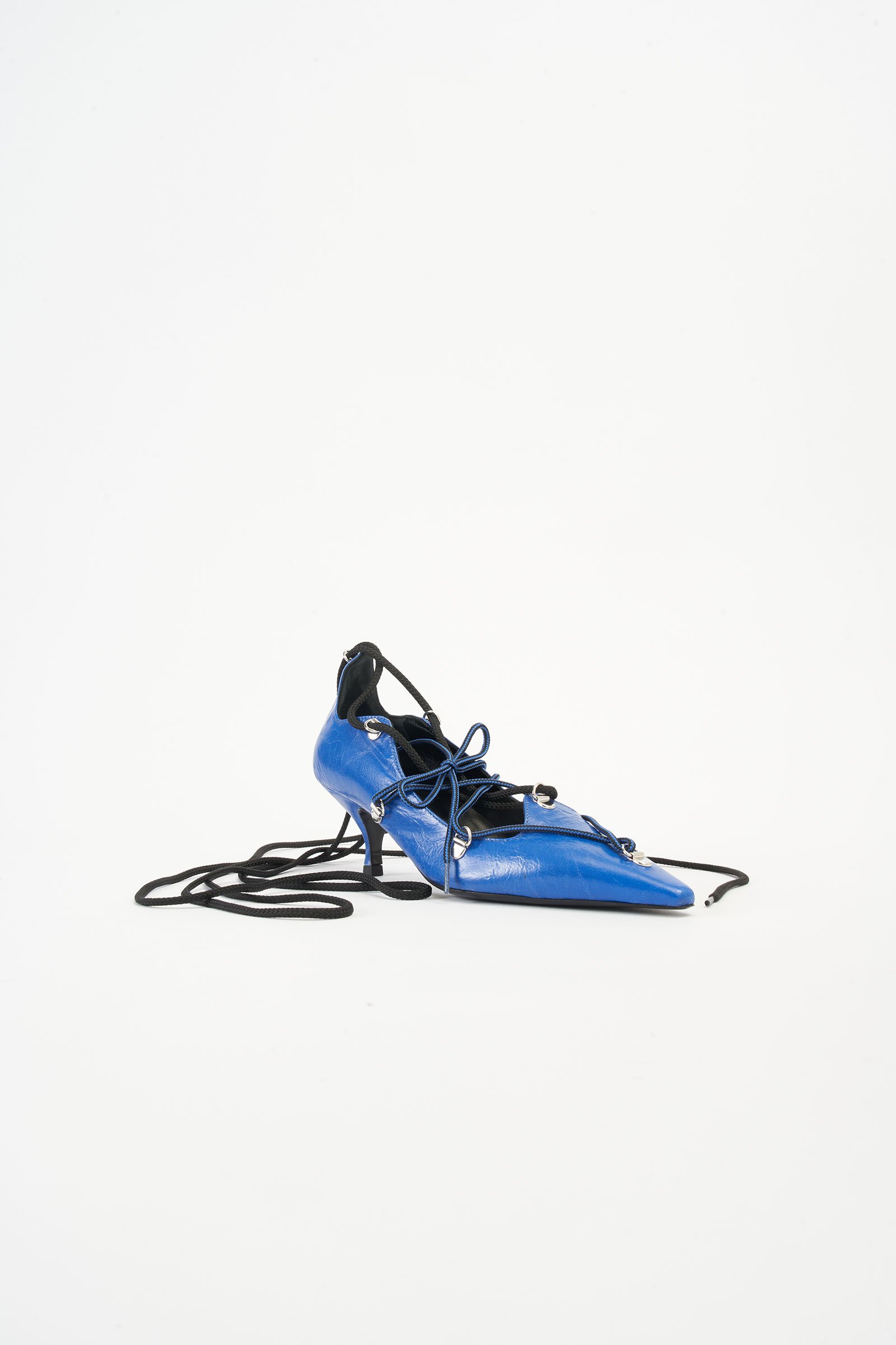 Bea Lace-Up Blue Leather Pumps